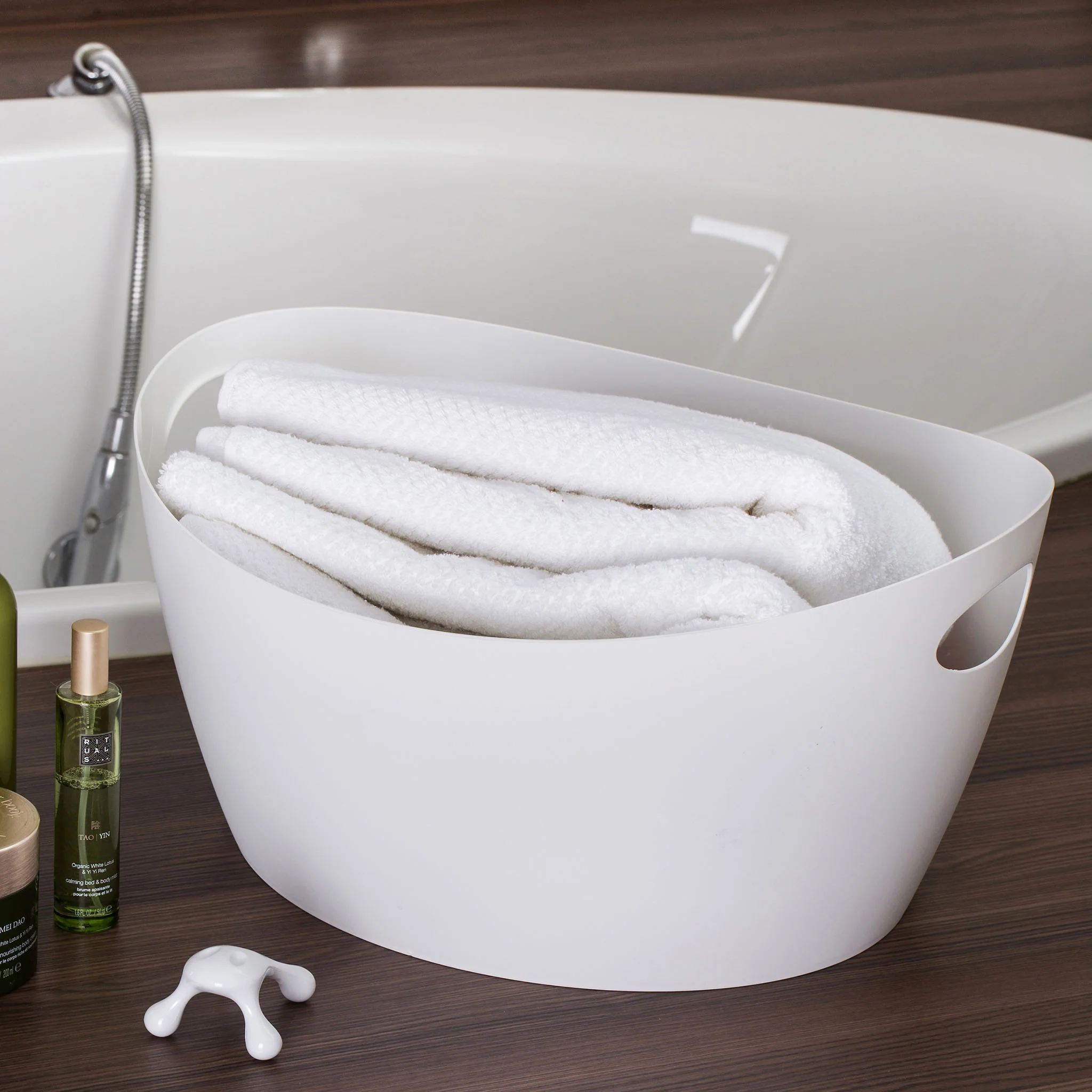 Packt man den BOTTICHELLI L zum Hochheben bei seinen Griffen, wird auch der ovale Schwung des Randes zu einer perfekt runden Sache. So spielerisch sich seine Form wandelt, so verwandlungsfähig zeigt er sich bei seinen Anwendungen. Er beweist seine Stärken drinnen und draußen, beim Sammeln und Transportieren, im trockenen und nassen Element. Kurz: Als universeller Haushaltshelfer ist der BOTTICHELLI L wahrlich ein Meister seines Fachs.